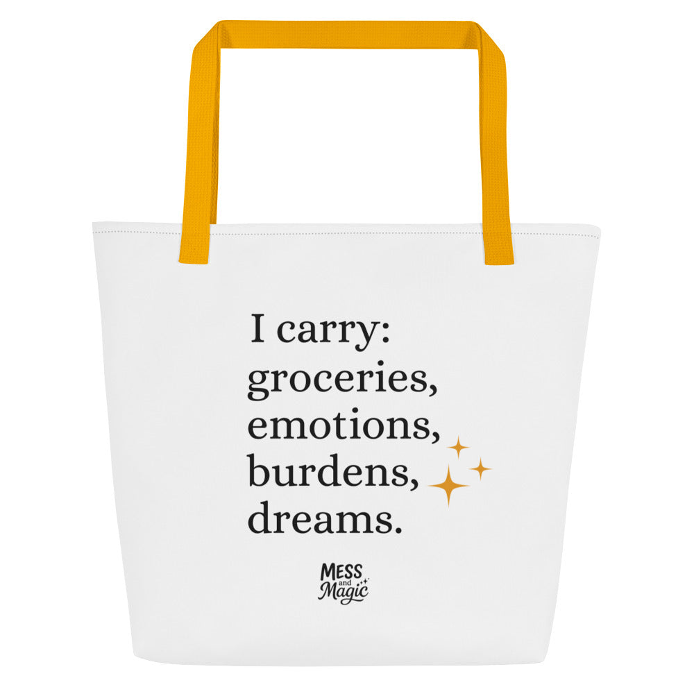 “I carry: groceries, emotions, burdens, dreams.”
